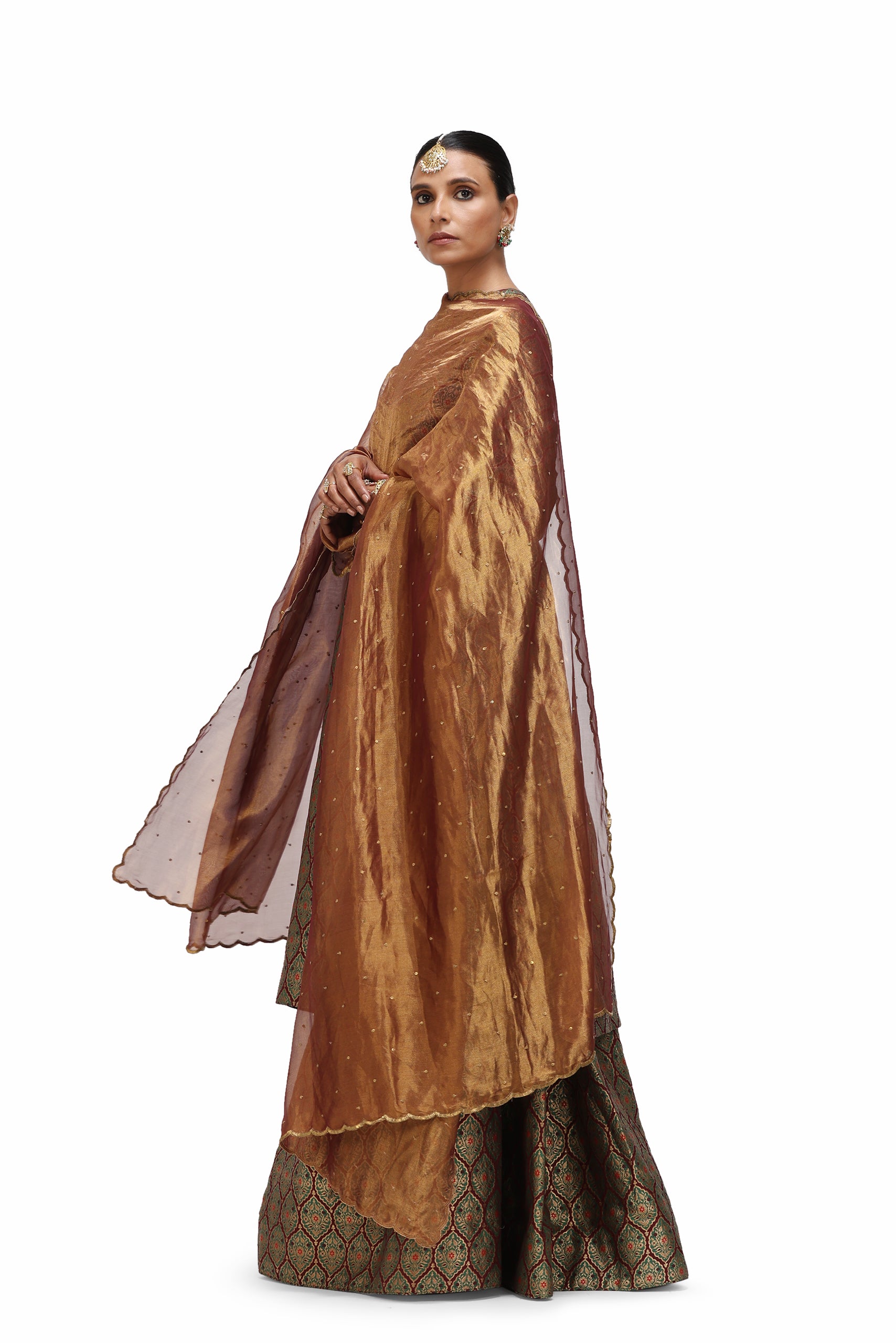 Color - Kurta Pant (Garnet, Green and Gold), Dupatta (Garnet Bronze)