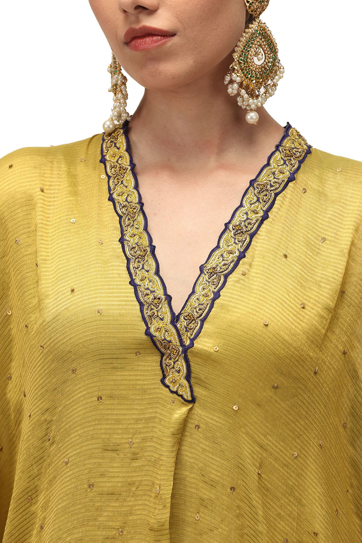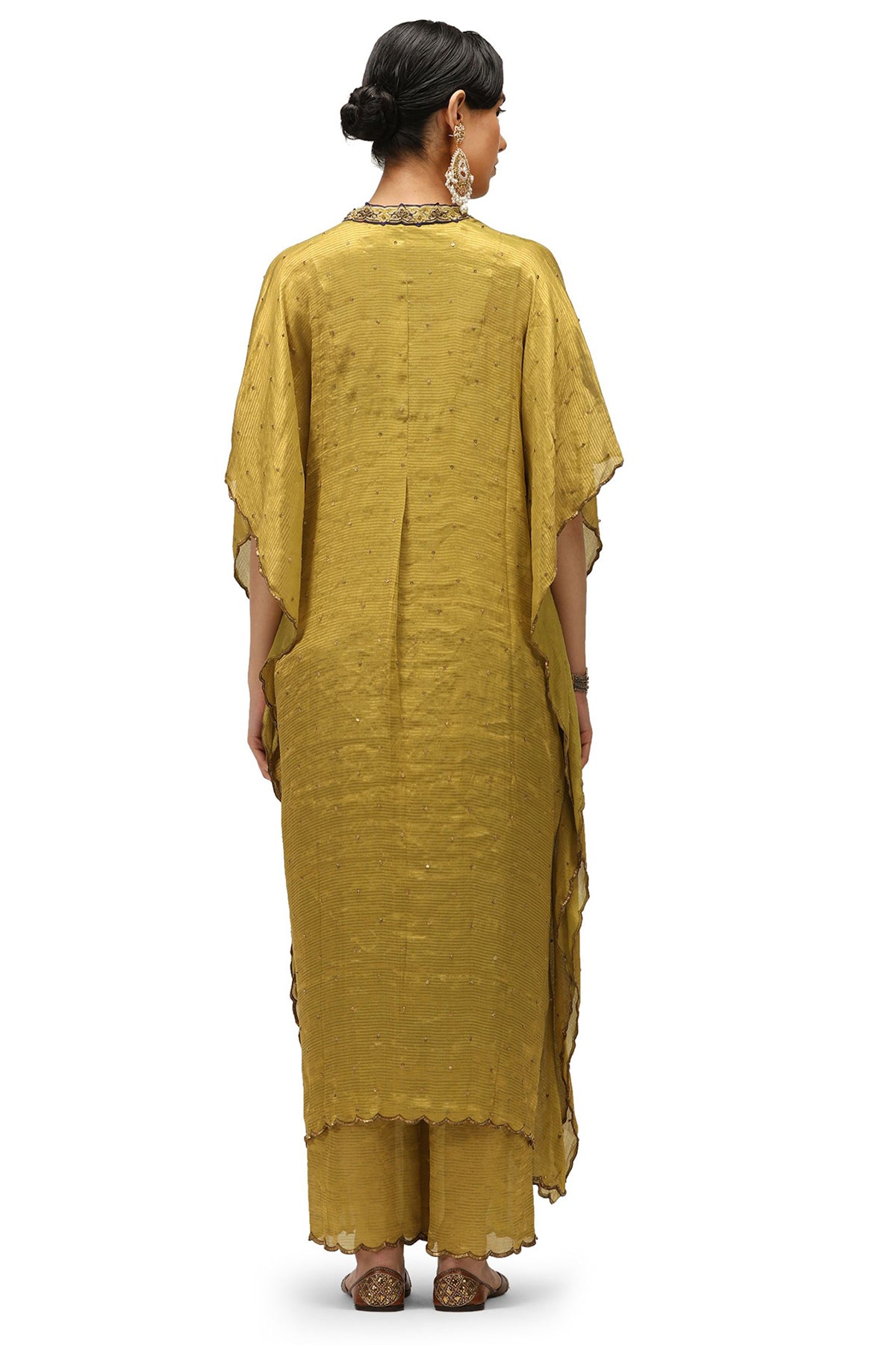 Intricately handwoven and hand-embroidered kaftan paired with Under dress & Pants.