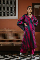 Intricately handwoven fuchsia and green kaftan in satin silk.
