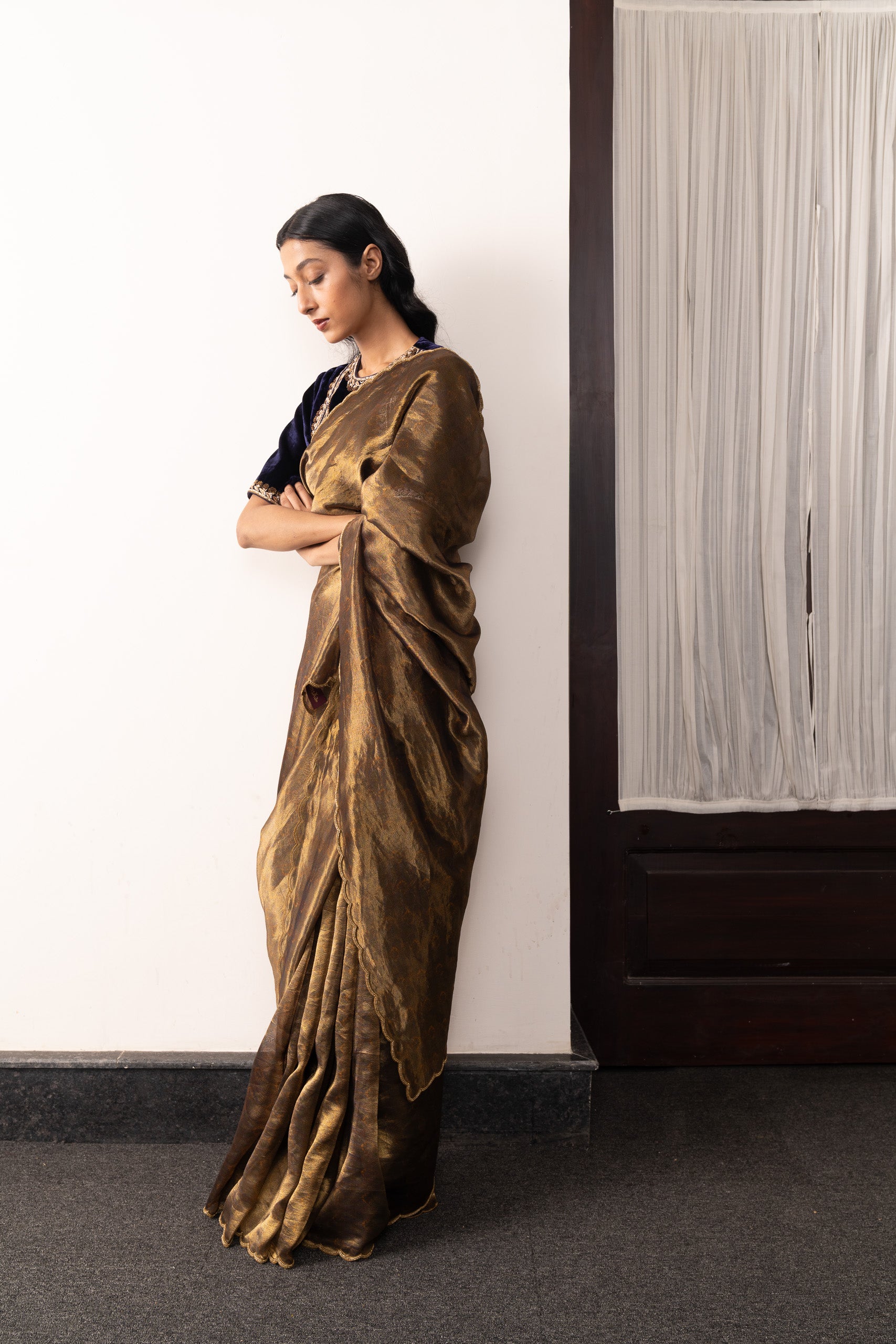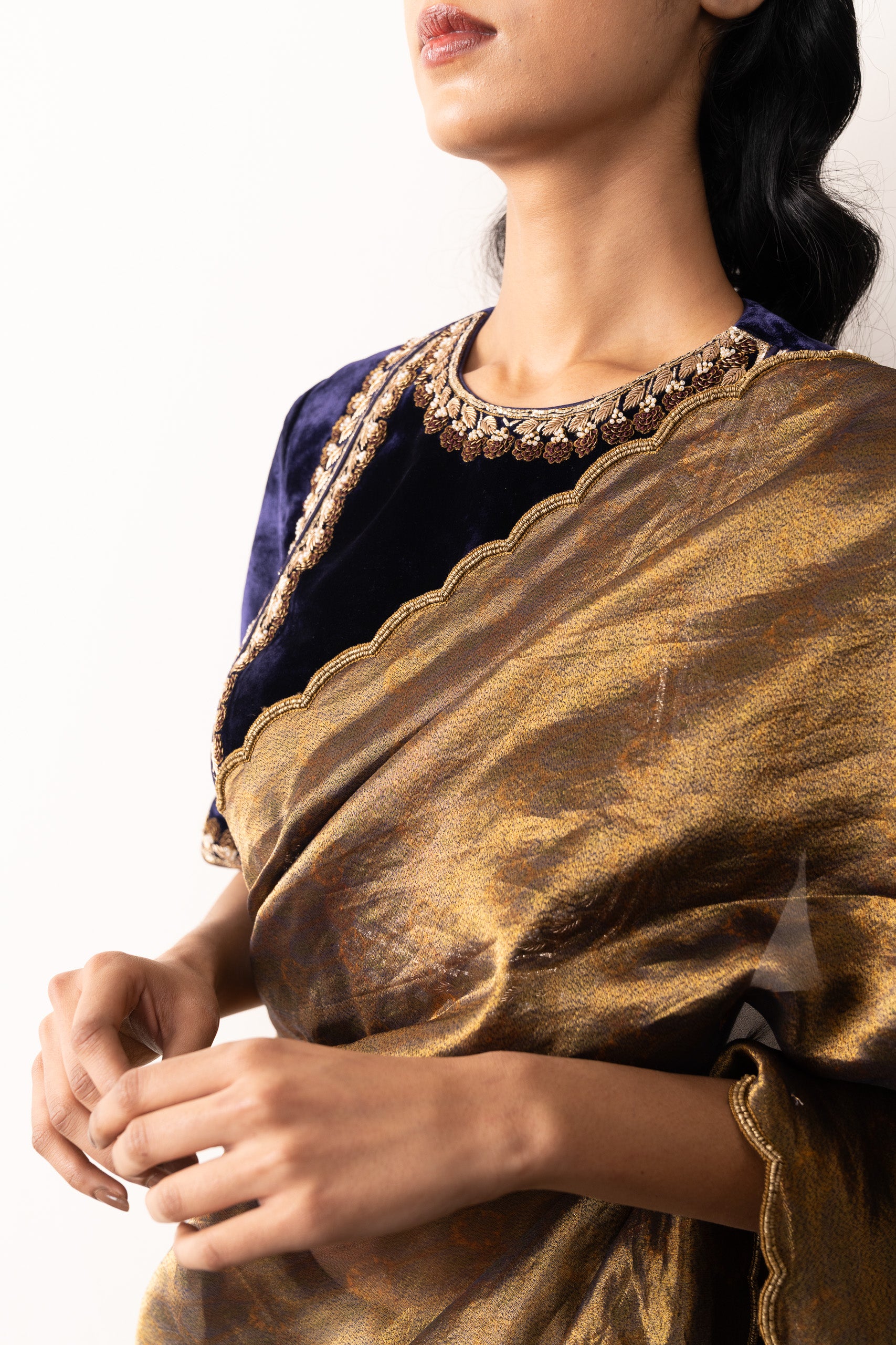 - FABRIC: Tissue Silk (Saree), Velvet (Blouse)