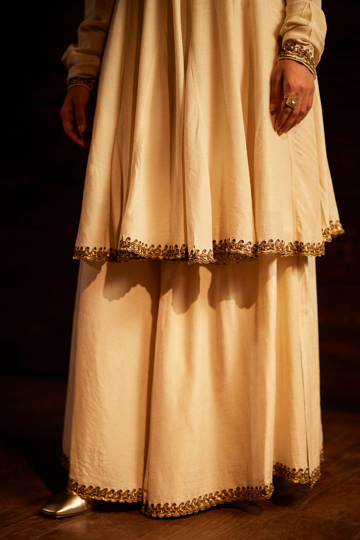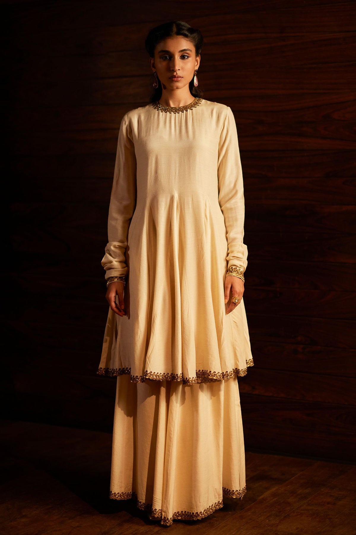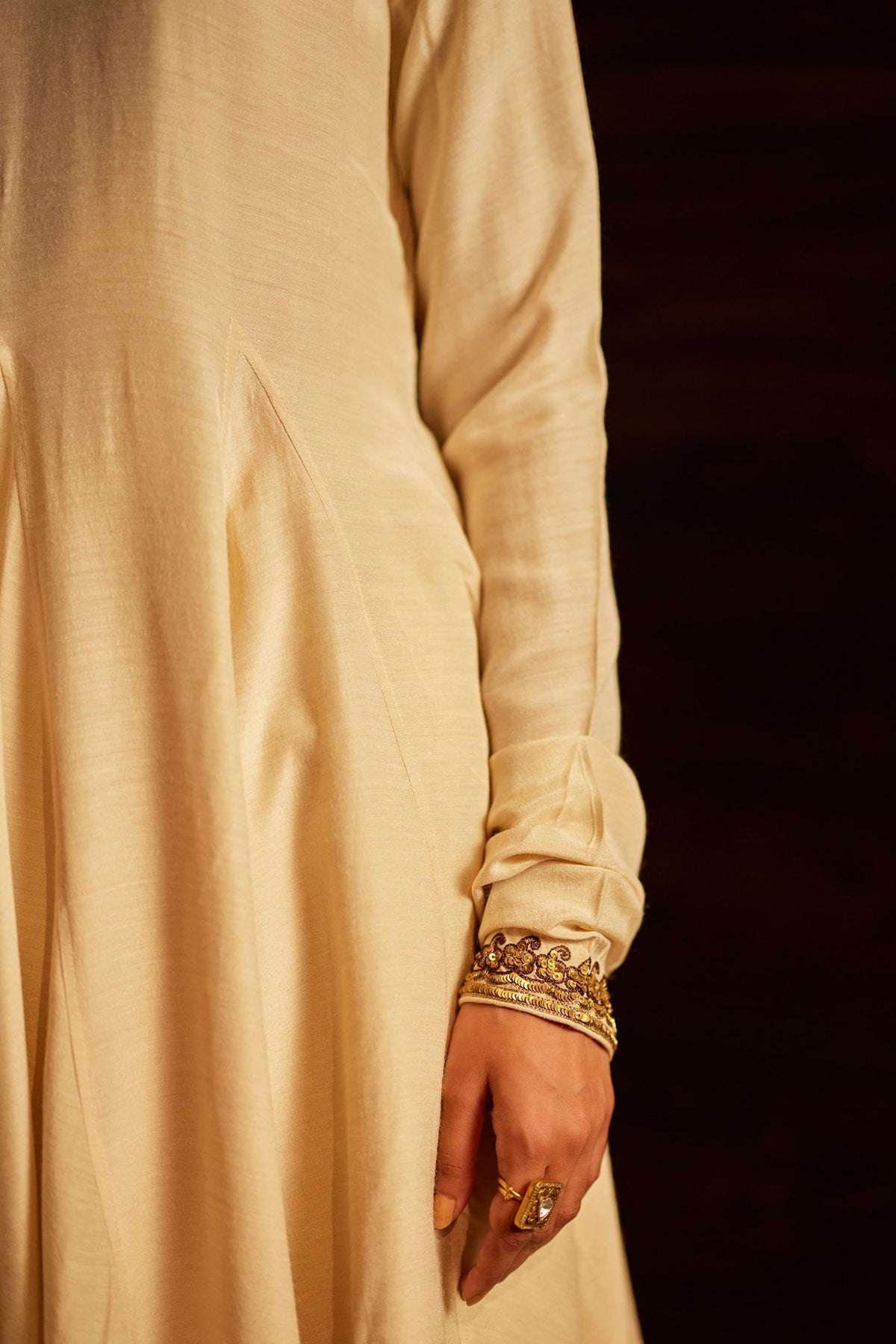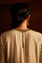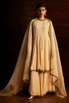 Intricately handwoven kurta set paired with dupatta in ivory.
