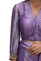 Jeia is a handwoven munga silk blouse in violet featuring 'zardosi' hand embroidery on the sleeves.