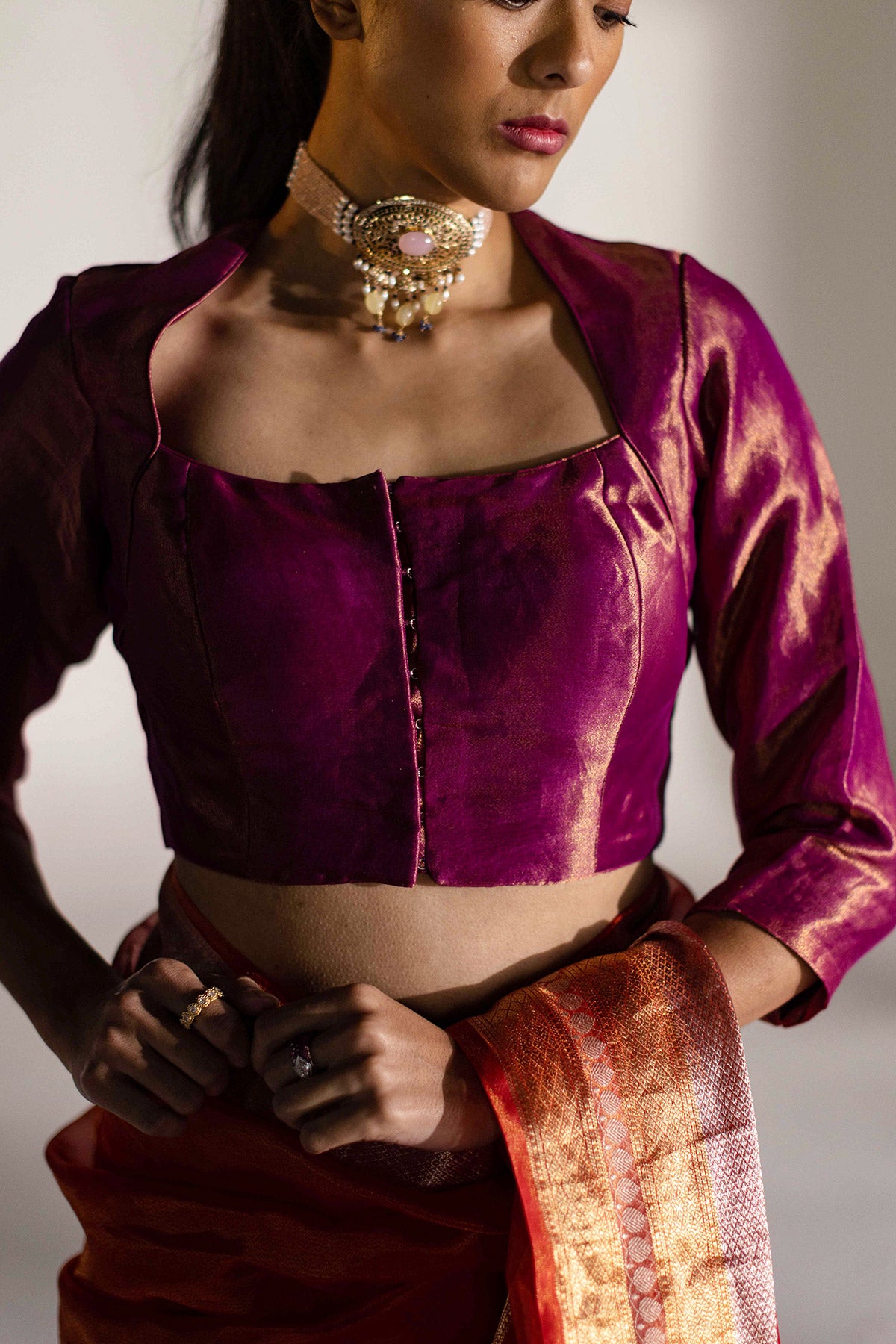 Experience elegance with CHER, a hand-woven blouse in purple.