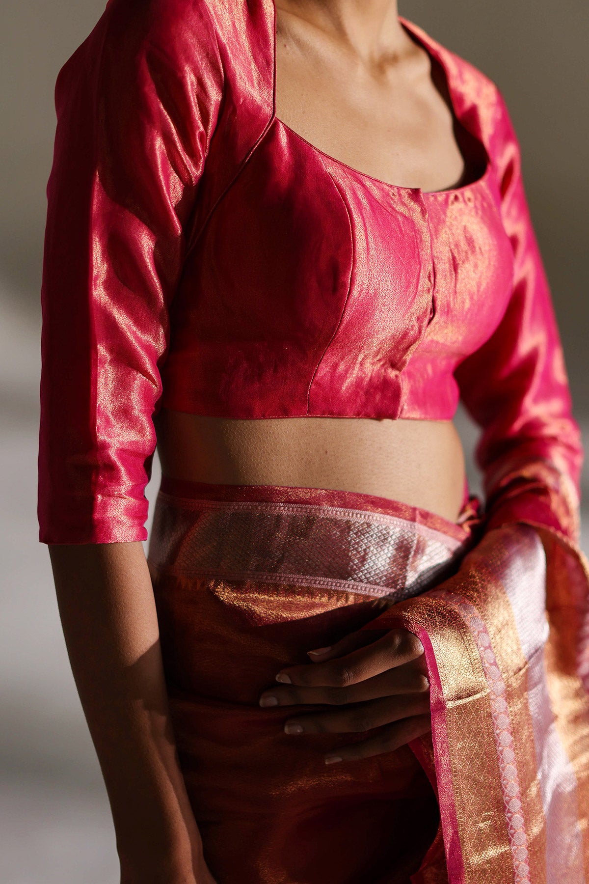 Experience elegance with COTY, a hand-woven blouse in magenta.