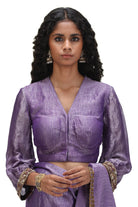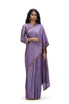 Bharavi is a handwoven munga silk saree in violet embellished with scalloped 'tiki' border.