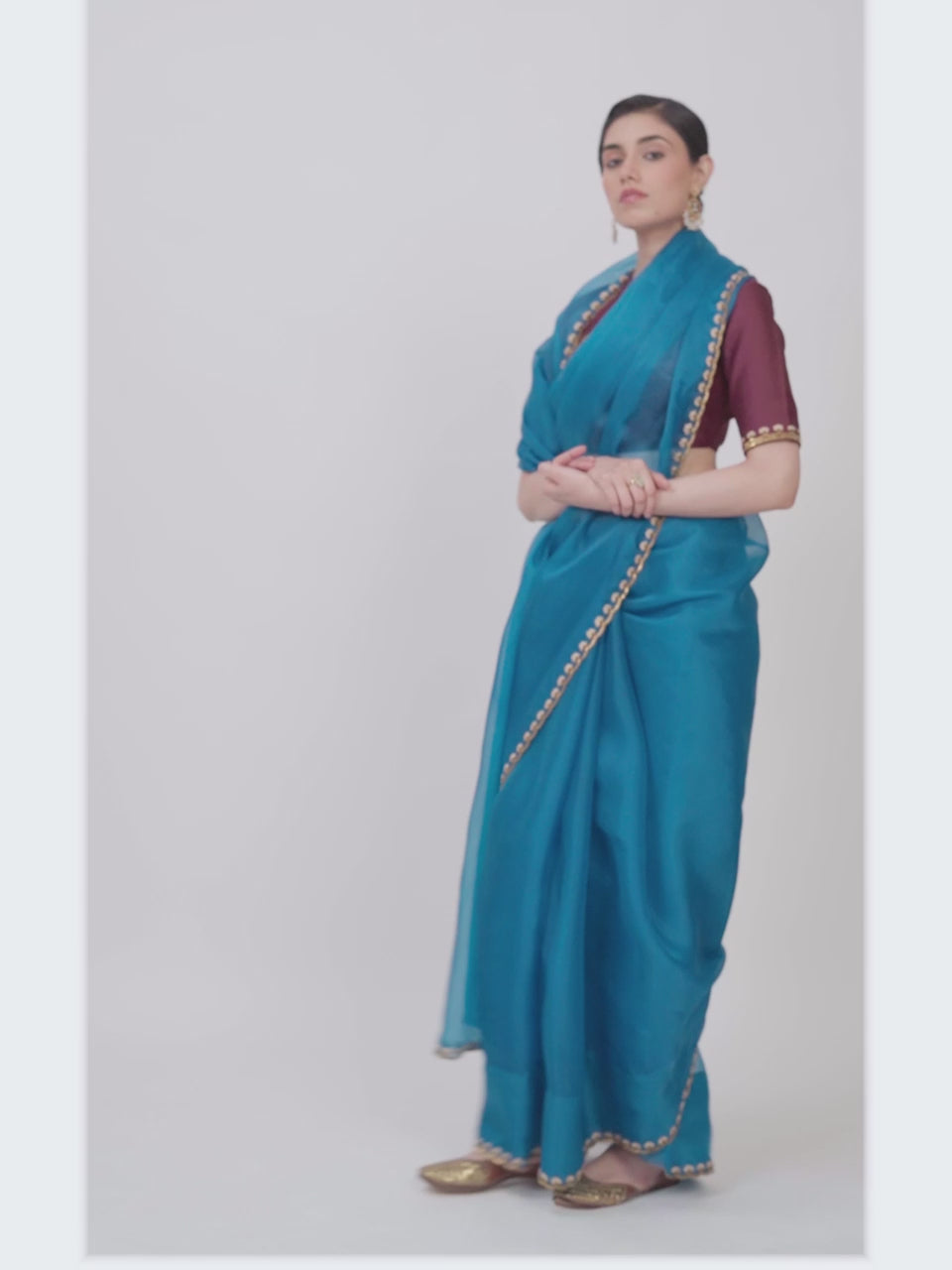 - COLOR: Aegean(Saree) and Garnet (Blouse)