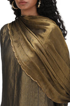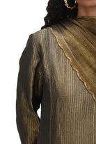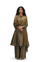 Ragini is a A-line kurta in munga silk paired with coordinated pants. The pants are scalloped with real brass 'tiki' at the edges.