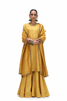Ruba is a hand woven mustard kurta paired with coordinated garhara pants.