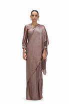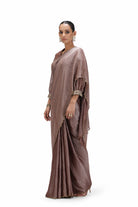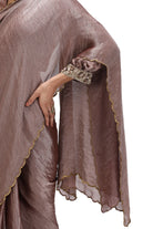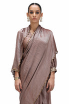 Yahvi is a handwoven munga silk saree in brown embellished with scalloped 'tiki' border.