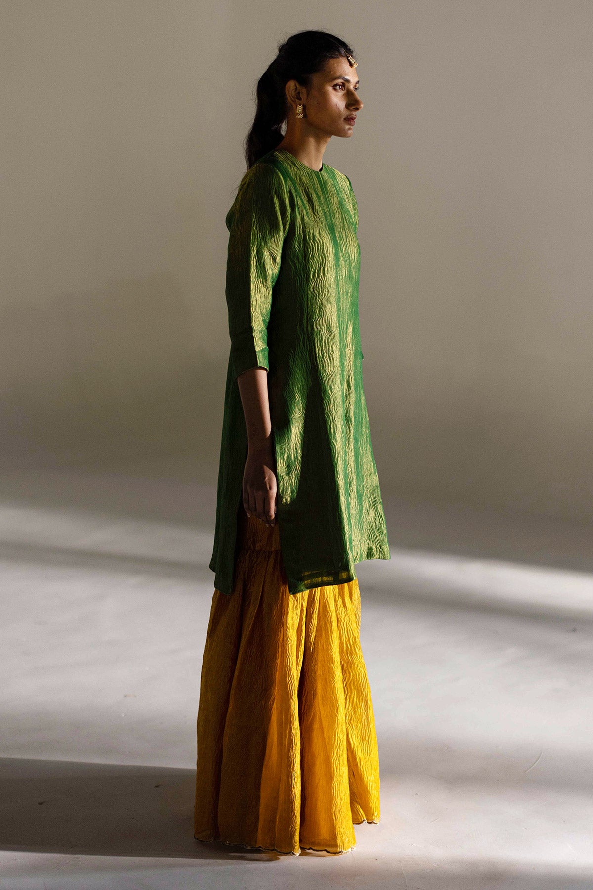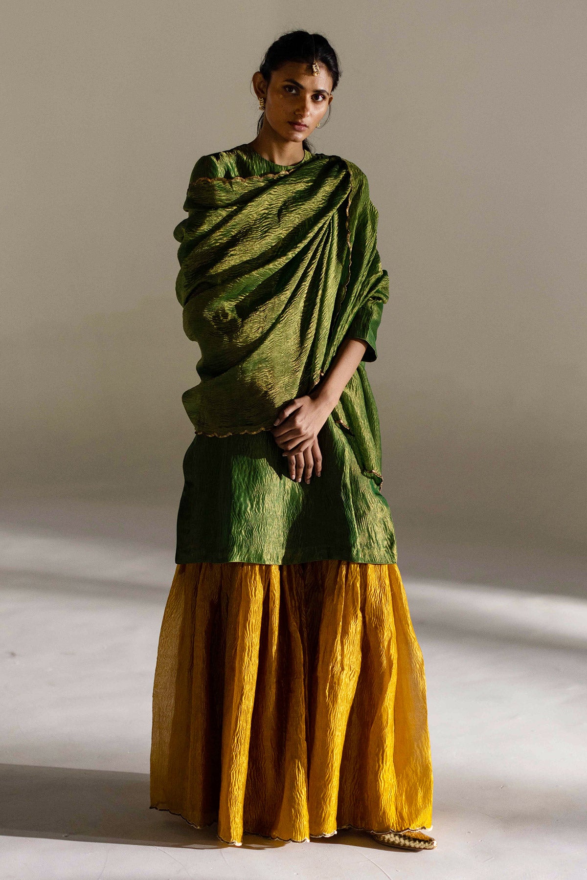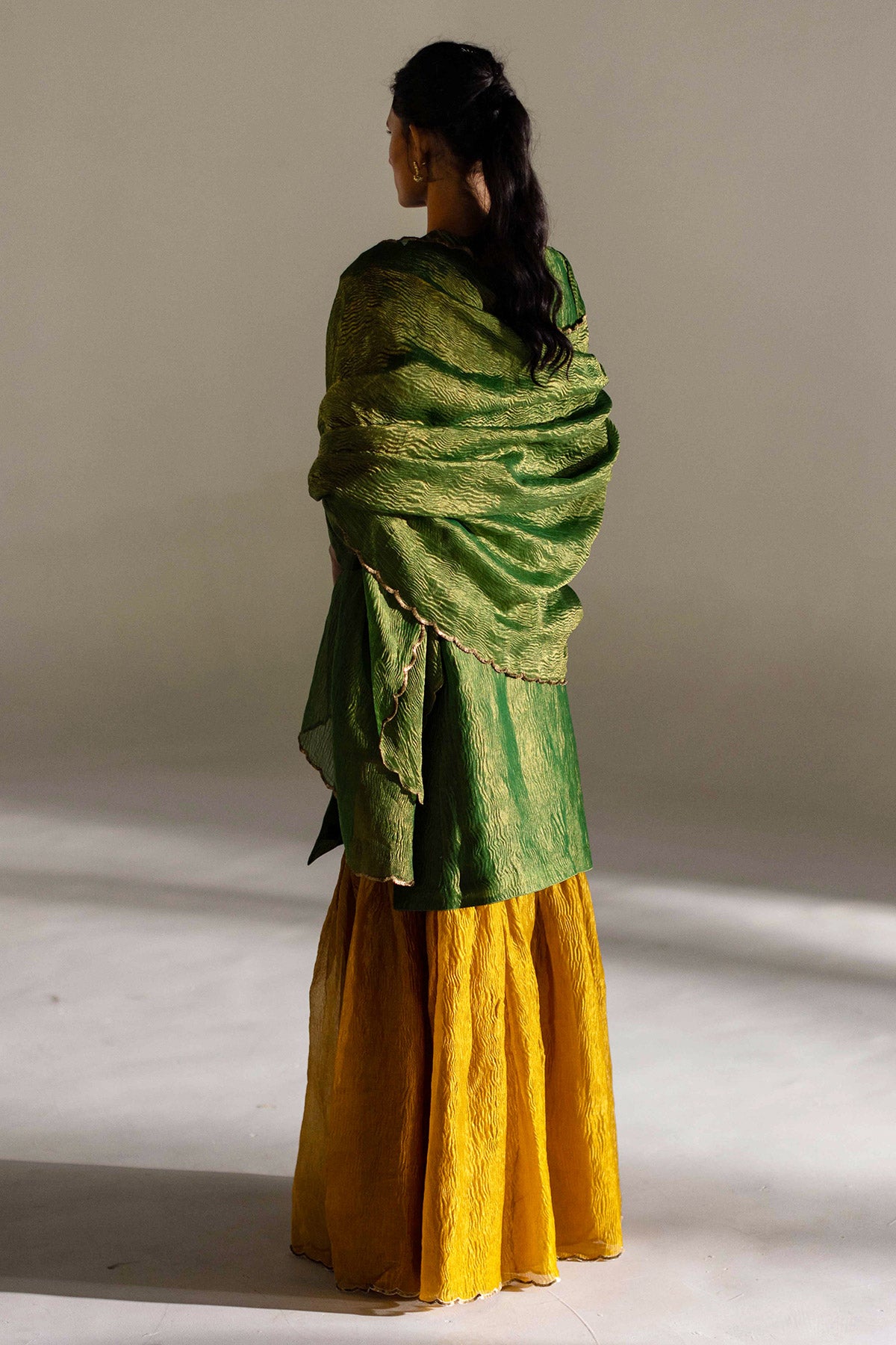 - COLOUR: Emerald Green (Kurta and Dupatta) & Mustard (Garara)
