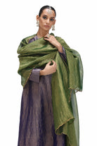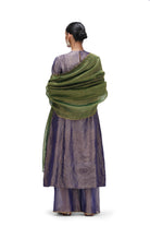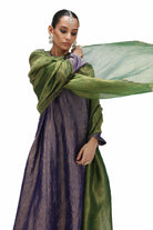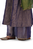 Madhula is a A-line kurta in crushed tissue paired with coordinated pants. The pants are scalloped with real brass 'tiki' at the edges.