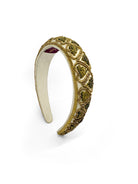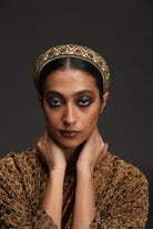 Kanak is a handcrafted hair accessory with 'paan' motifs hand-embroidered using real brass 'tiki' and 'resham'.