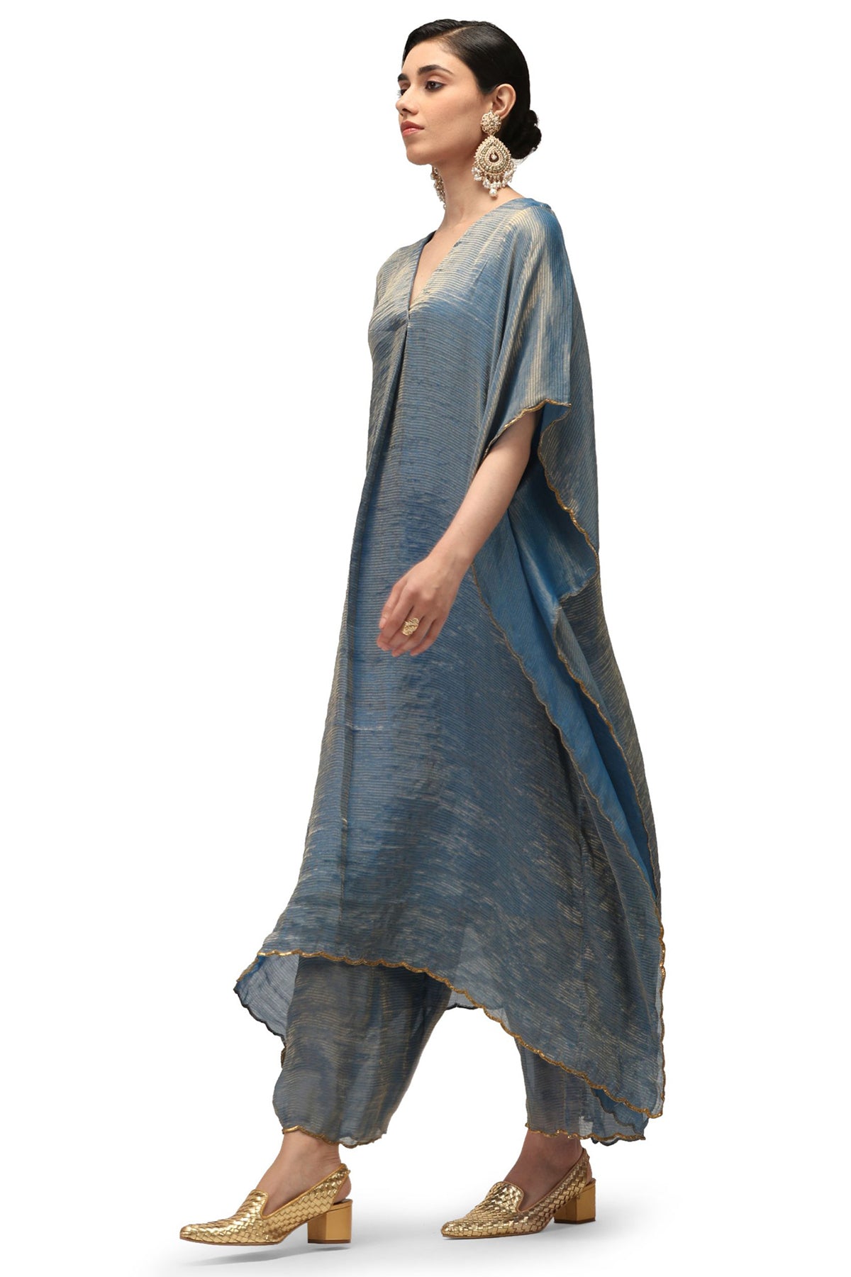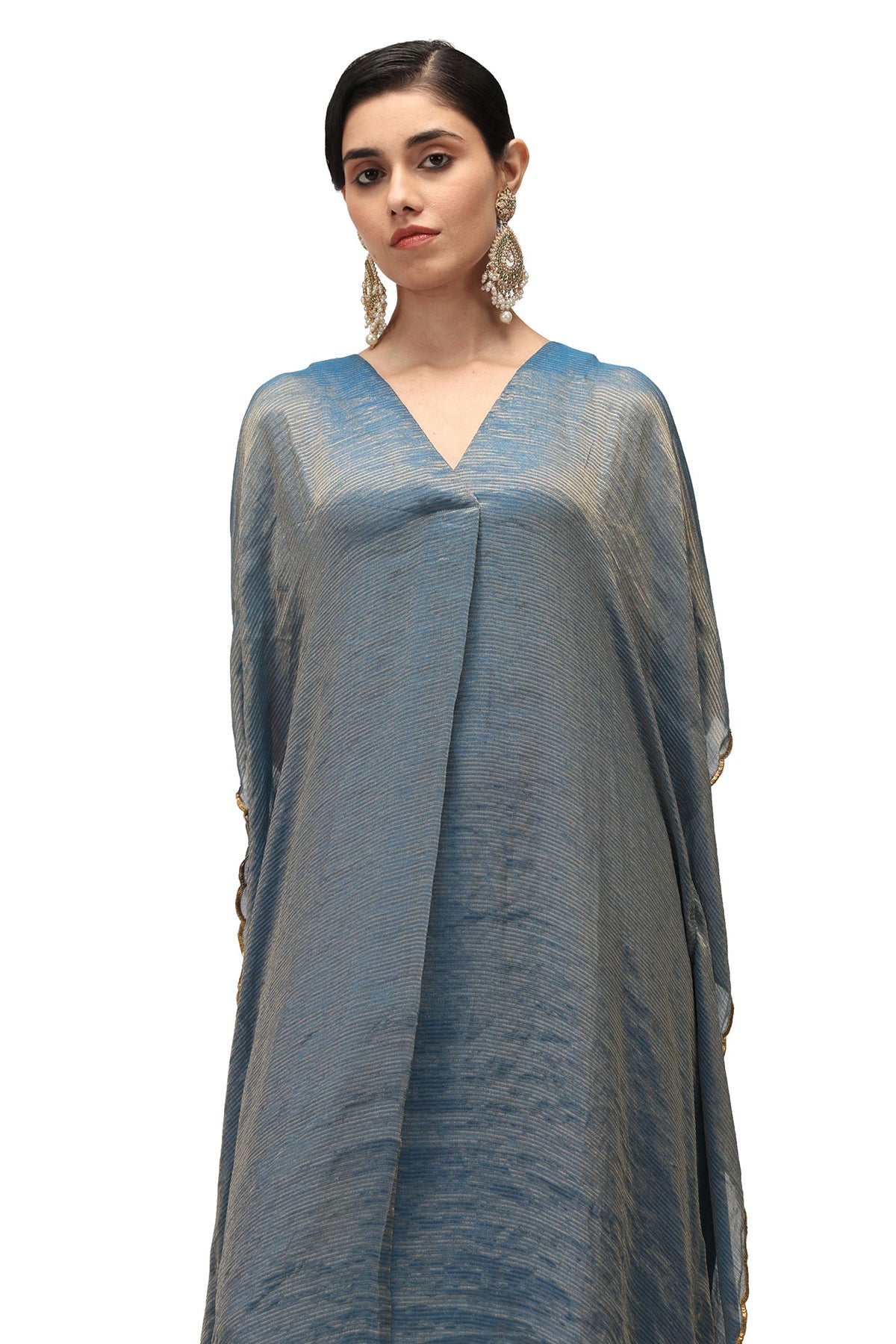Intricately handwoven and hand-embroidered kaftan paired with Under dress & Pants.