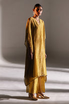 Experience elegance with Gisele, a hand-woven kaftan paired with pants in lime green.