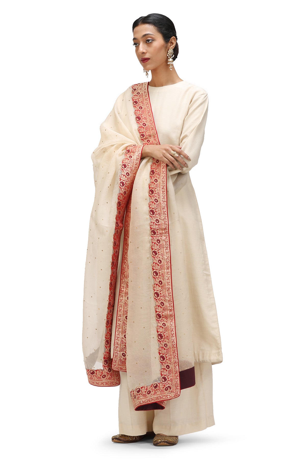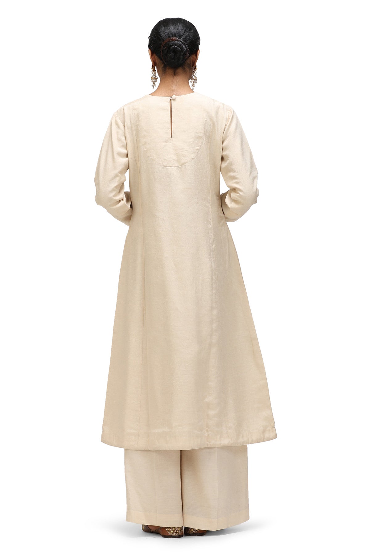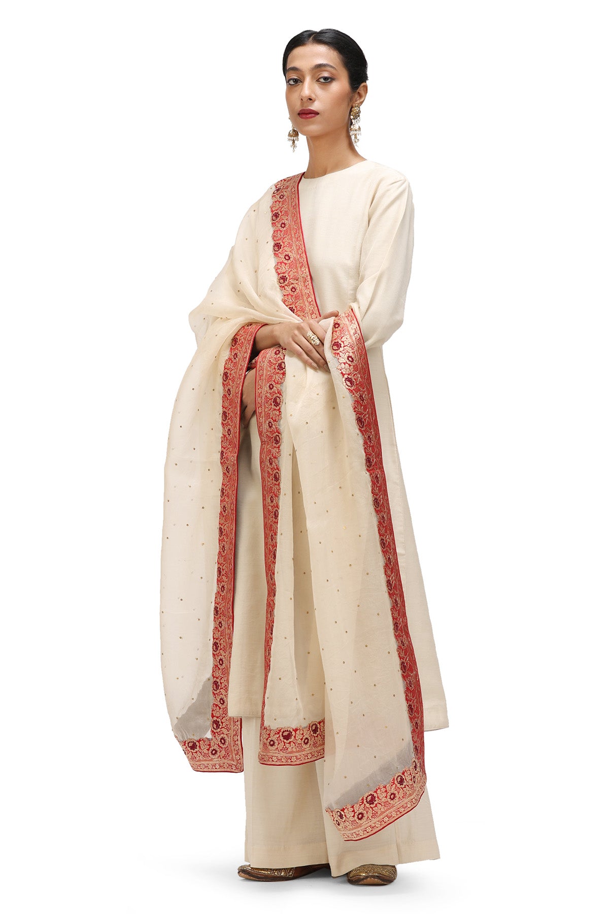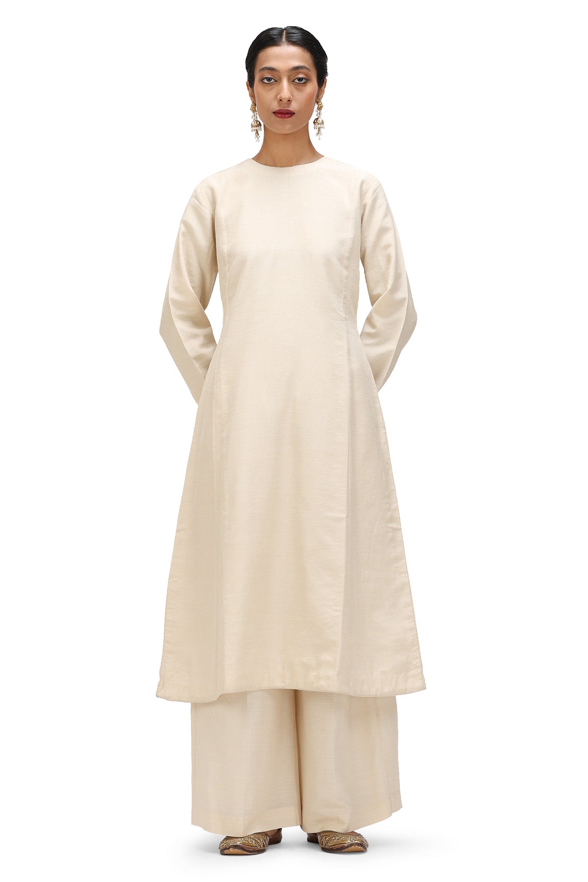 Shweta is a hand-woven munga silk kurta paired with coordinated pants.