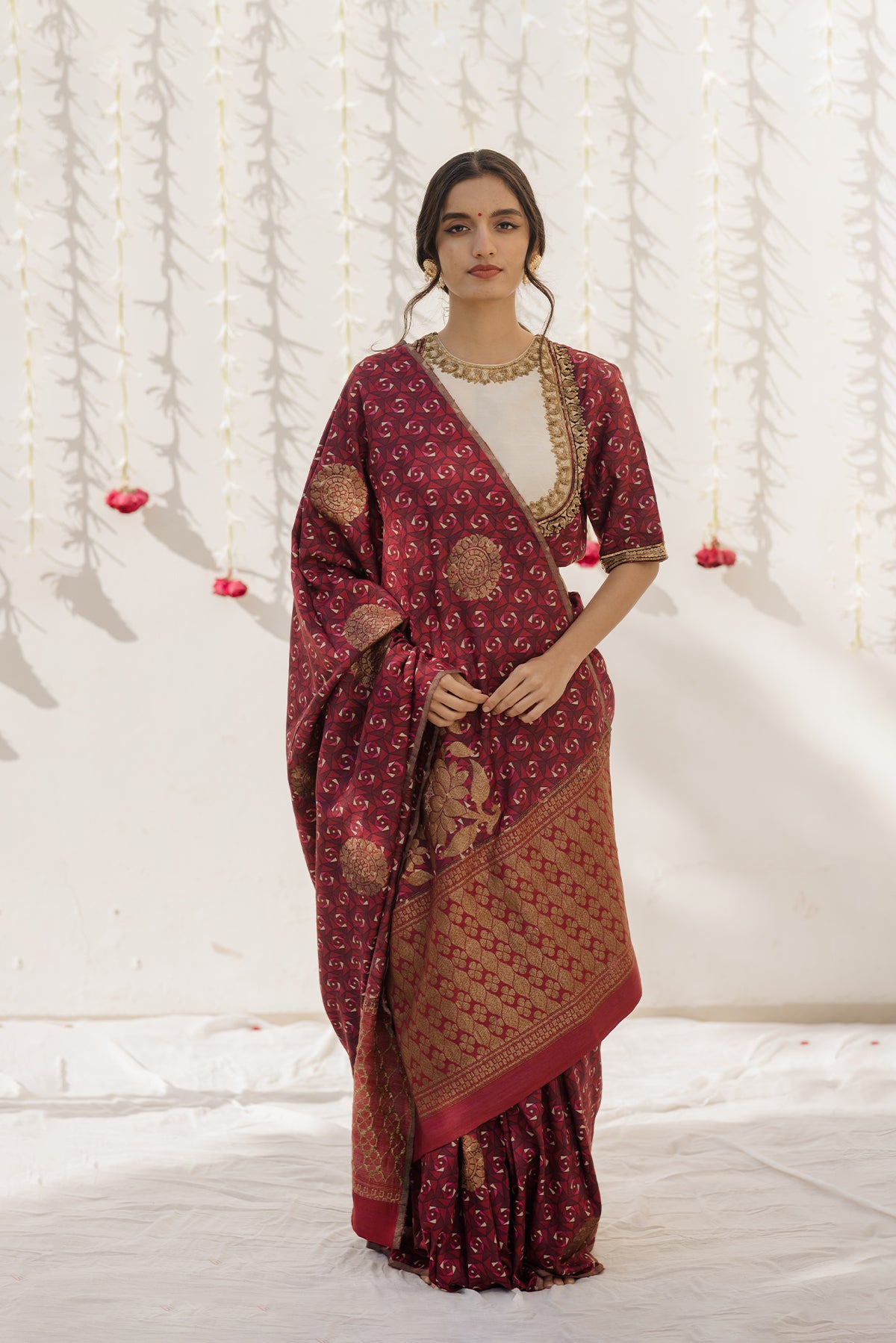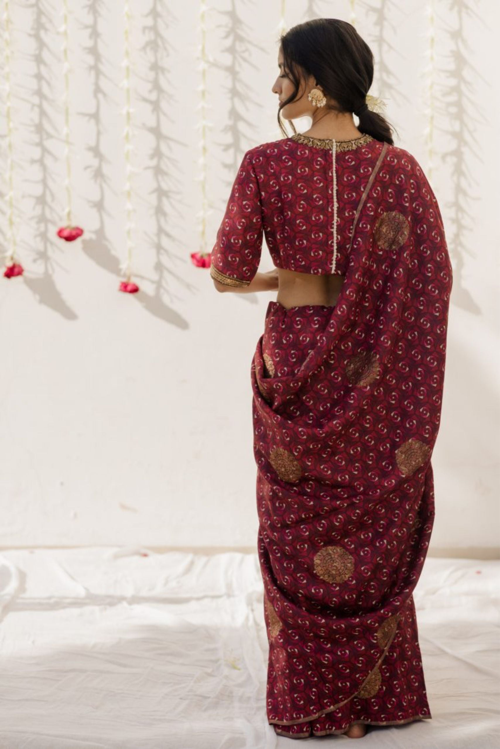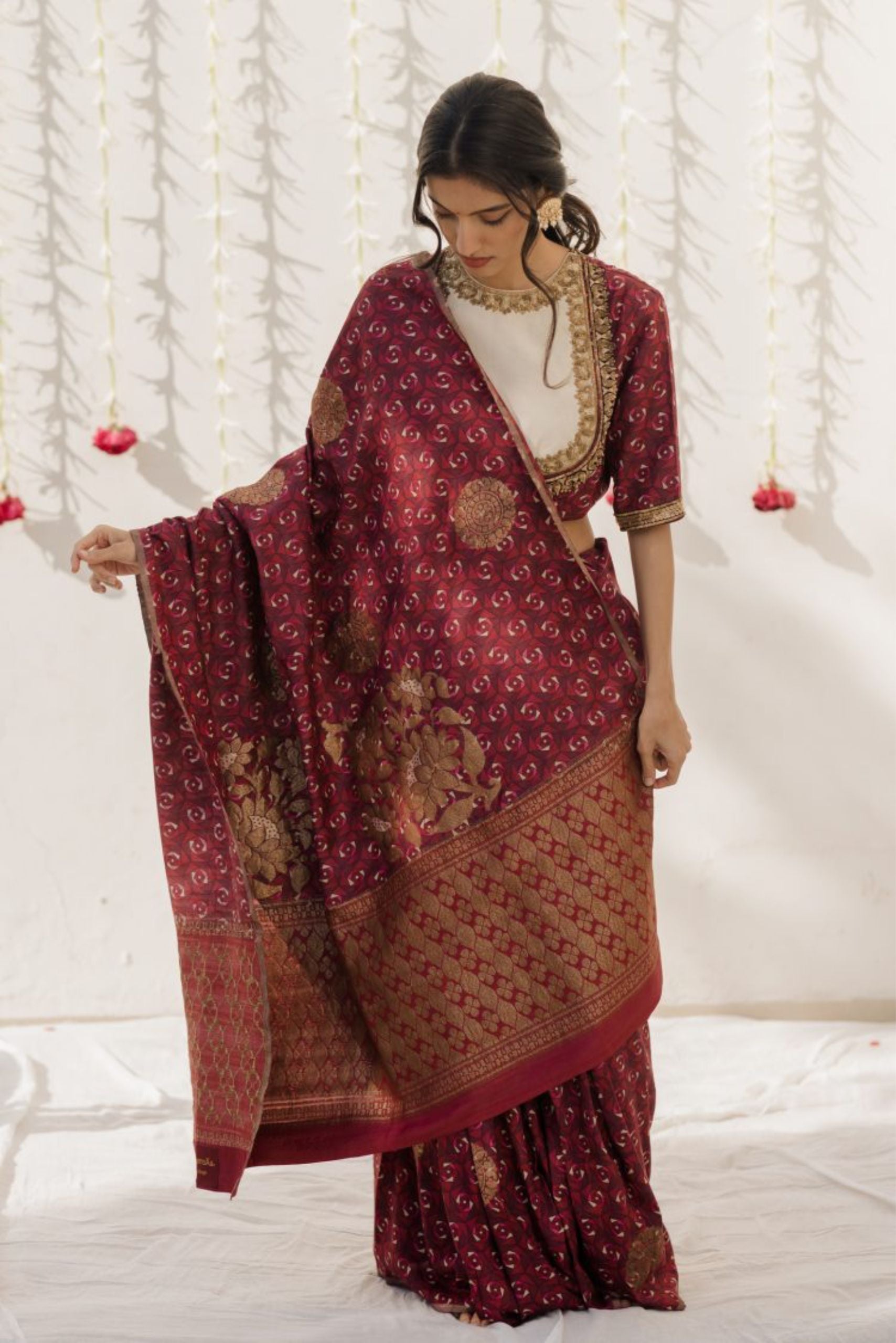 - COMPONENTS:1 (Saree with Unstitched Blouse)