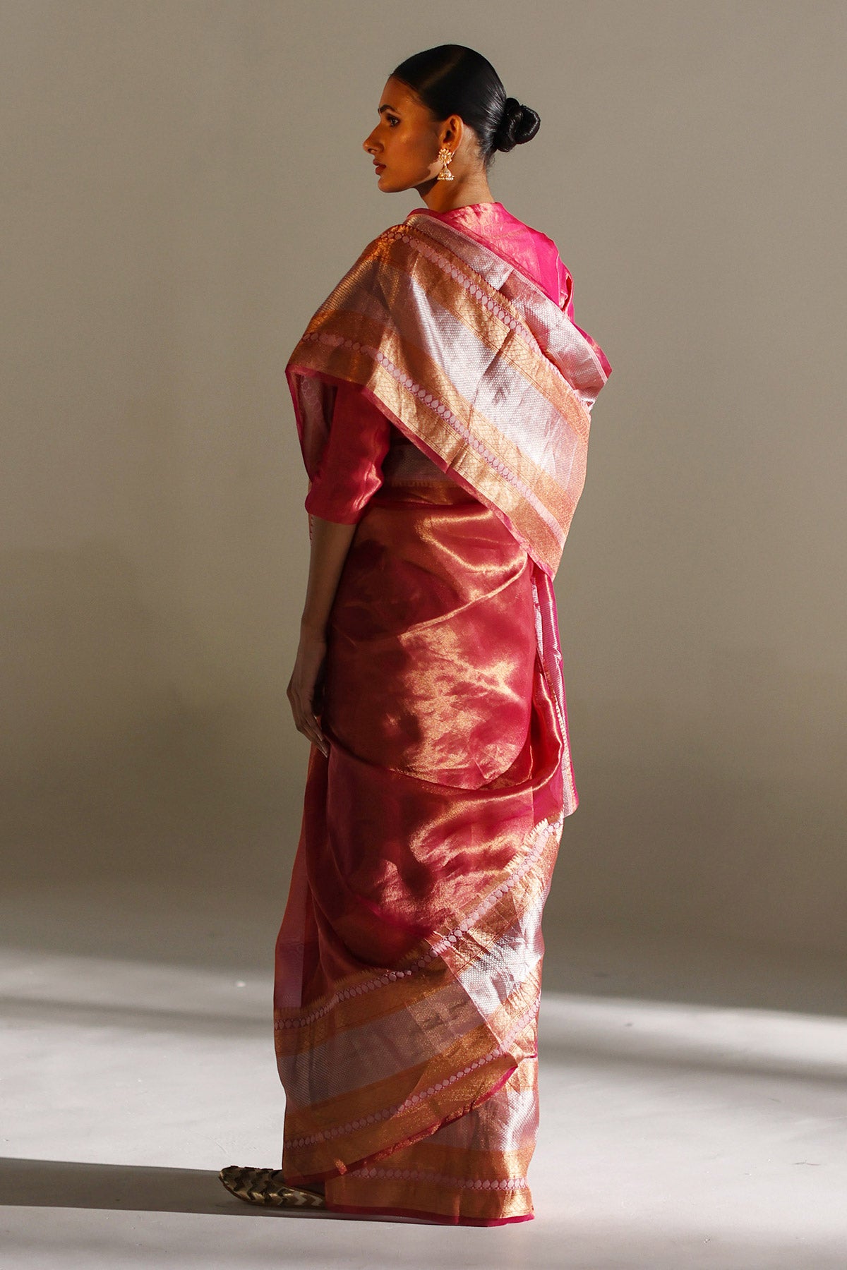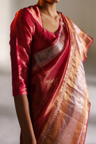 Experience elegance with BELL, a hand-woven saree in magenta.