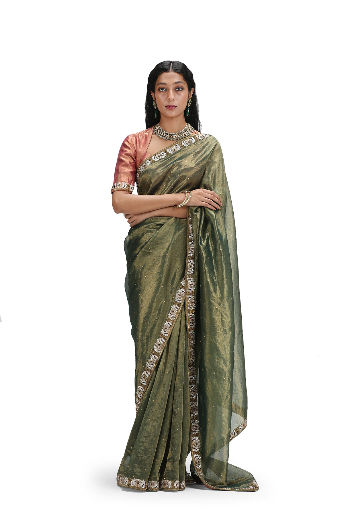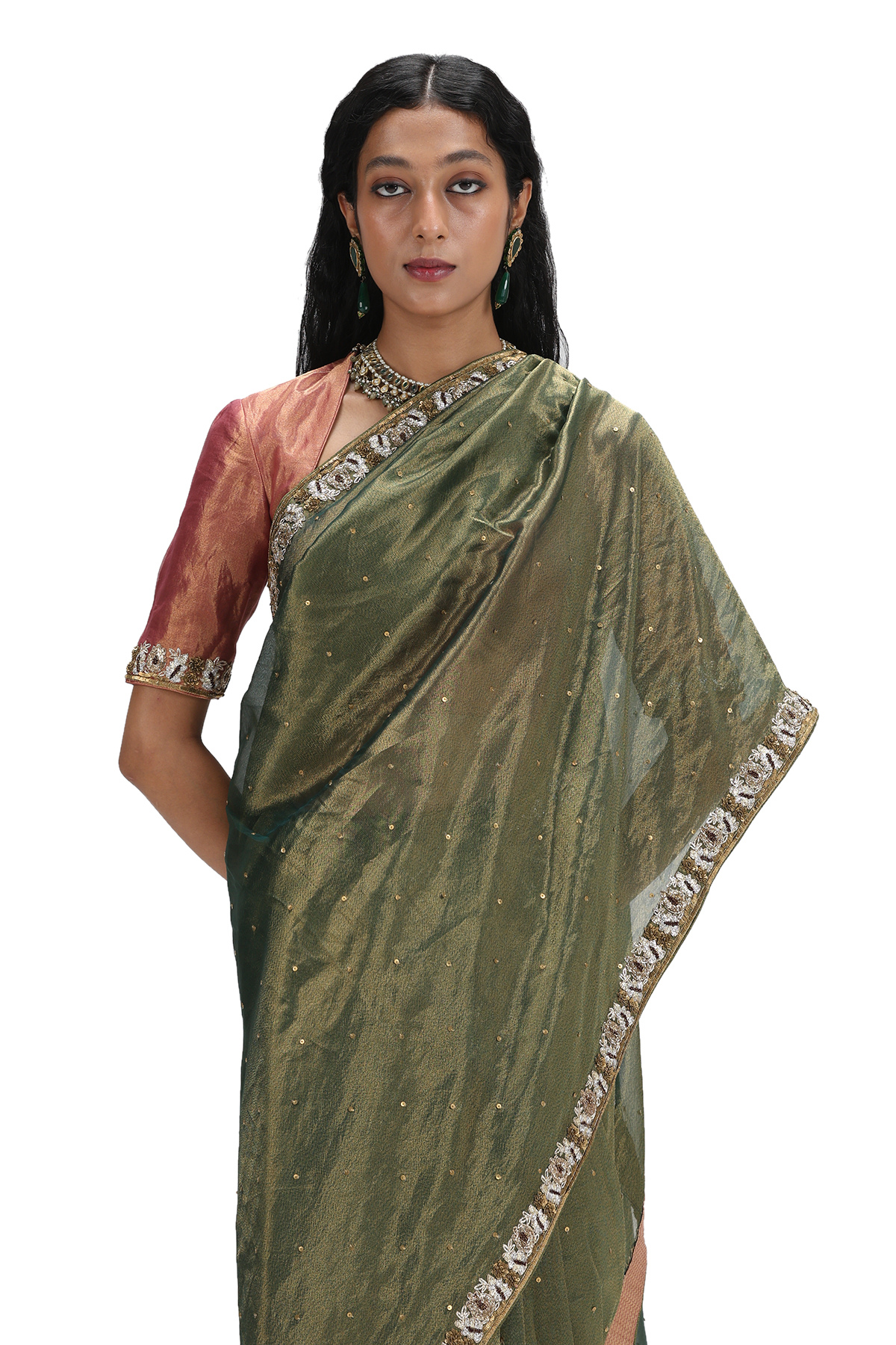Saree : Olive Blouse : Peach