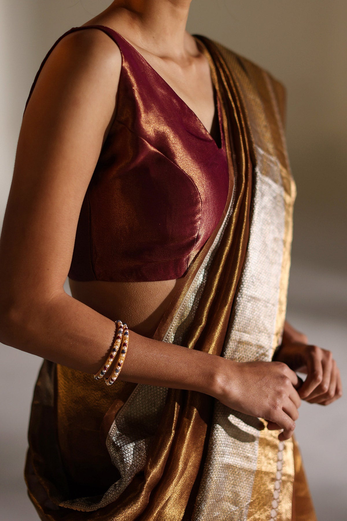 Experience elegance with KARYL, a hand-woven saree in bronze.