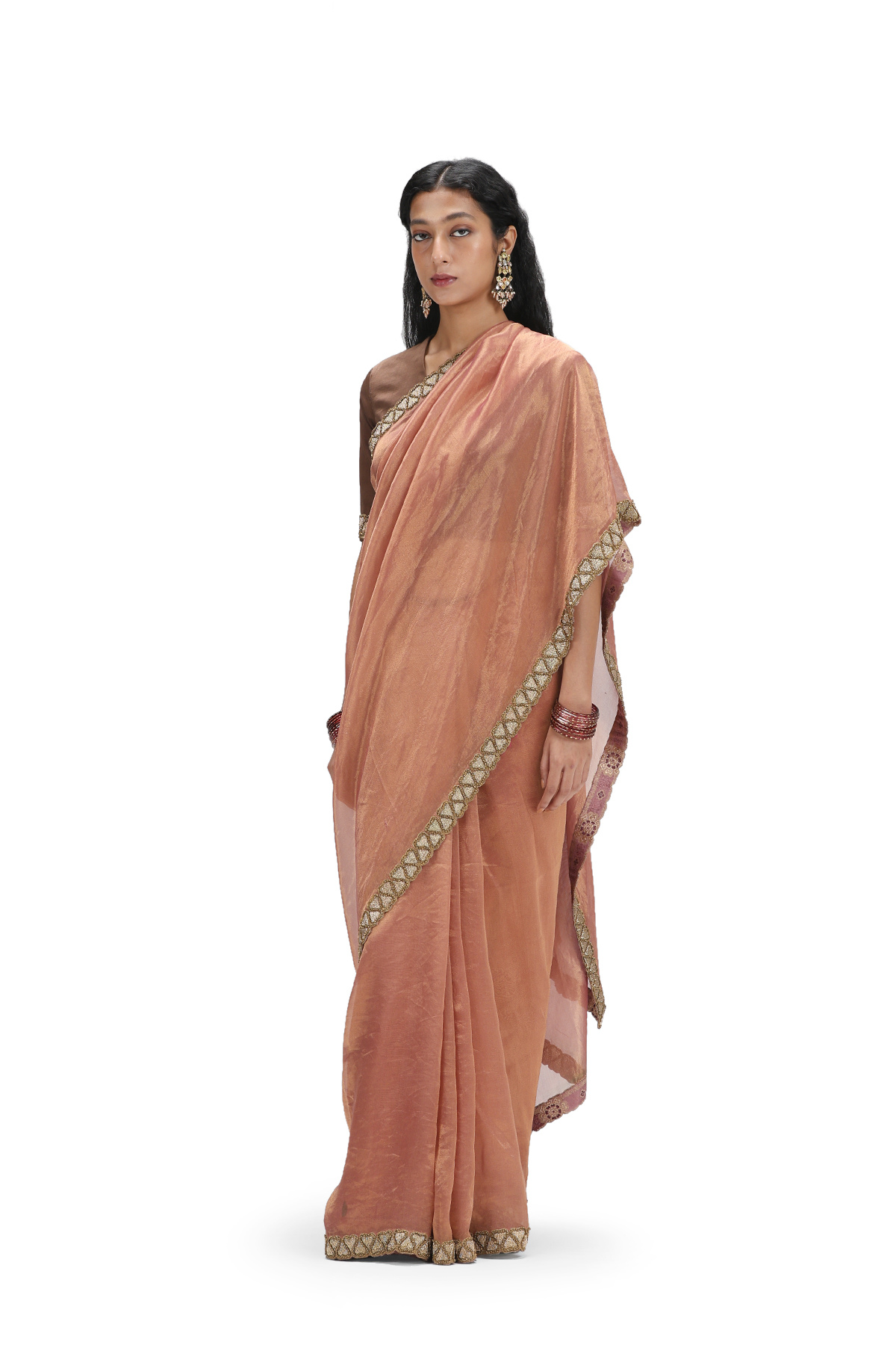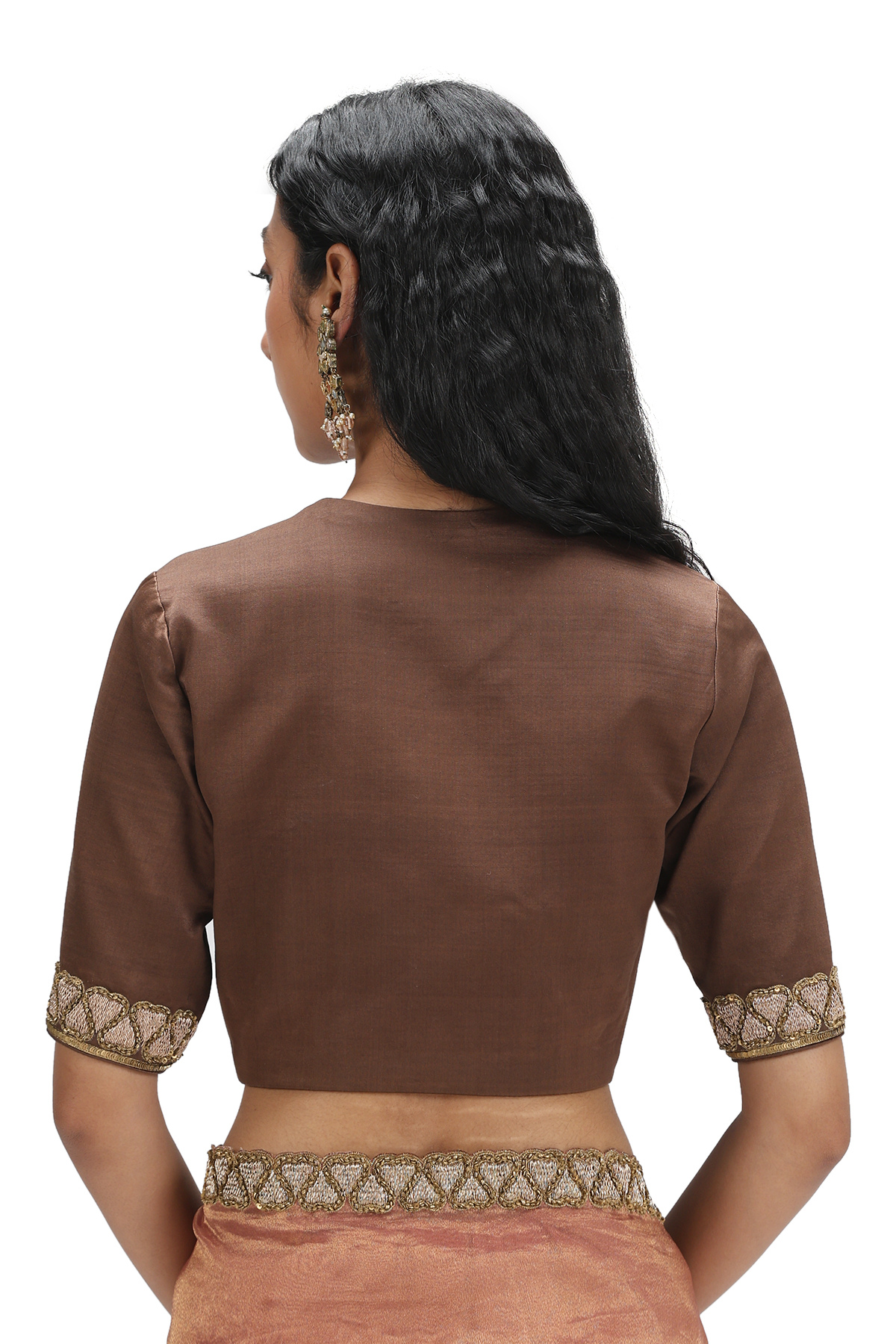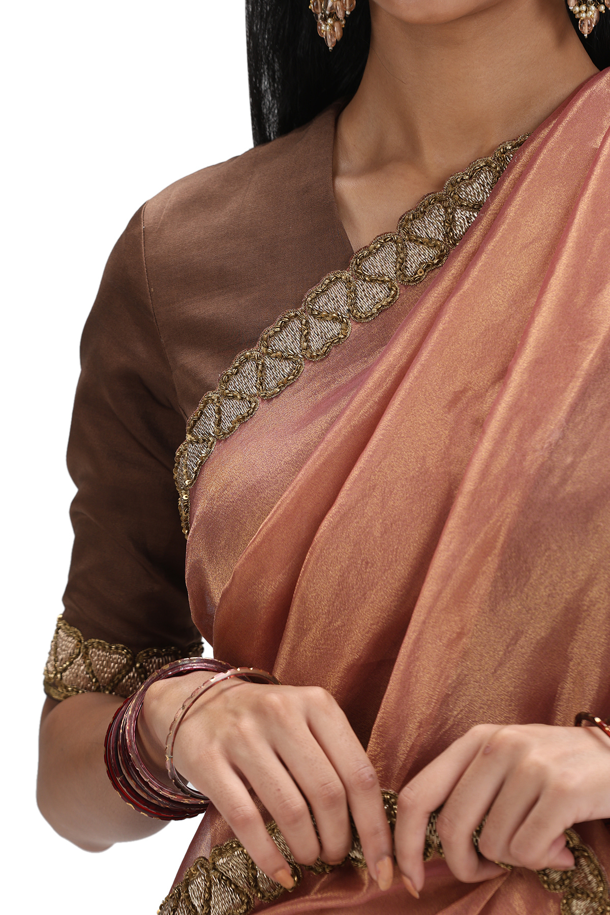 Saree : Fondant Pink Blouse : Chocolate Brown