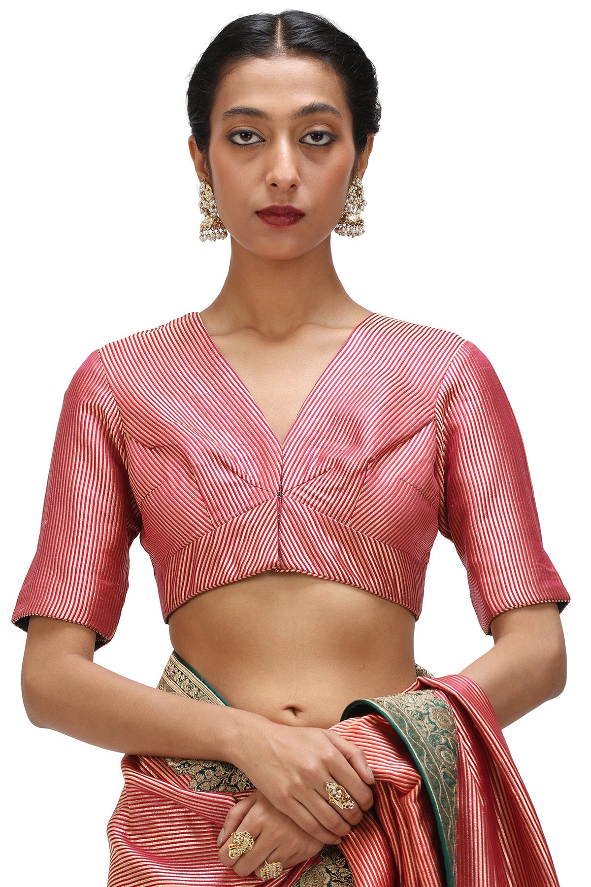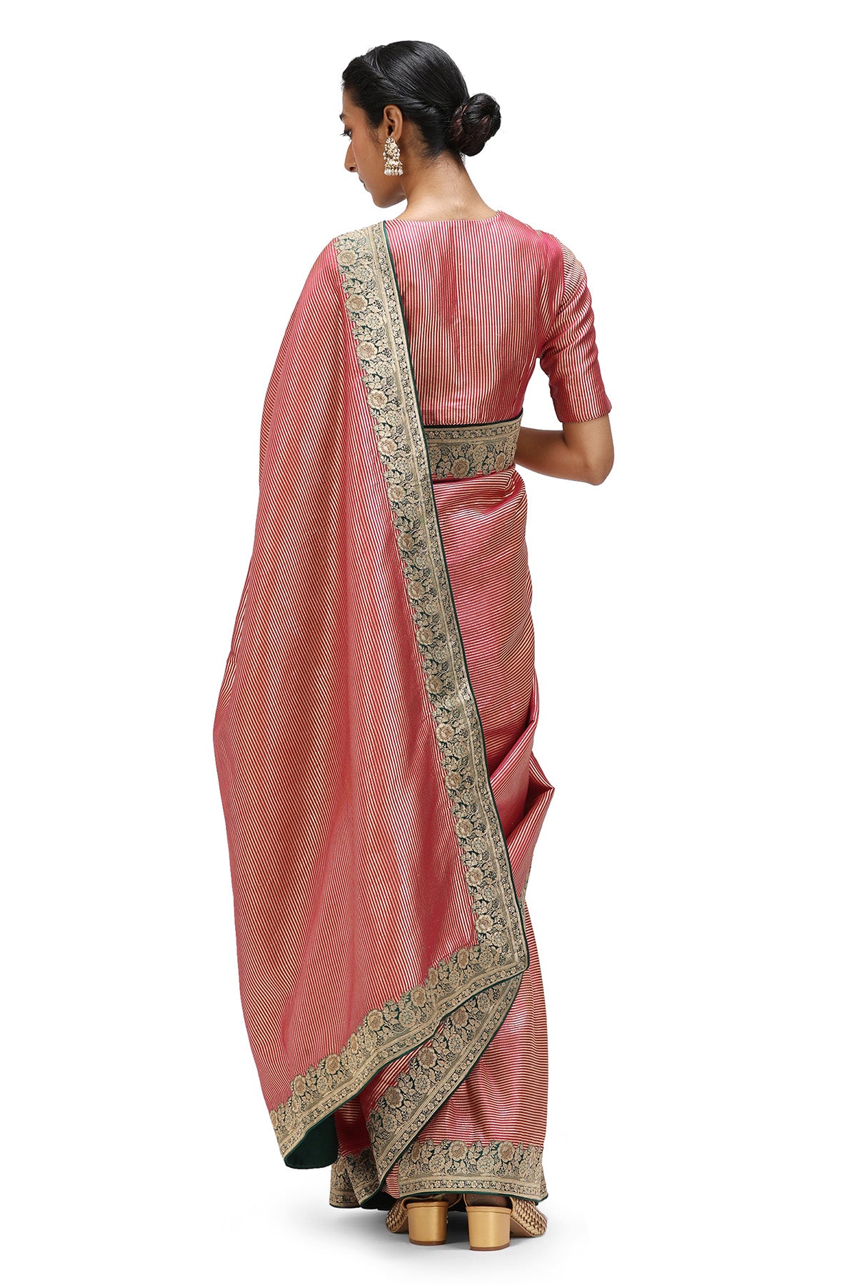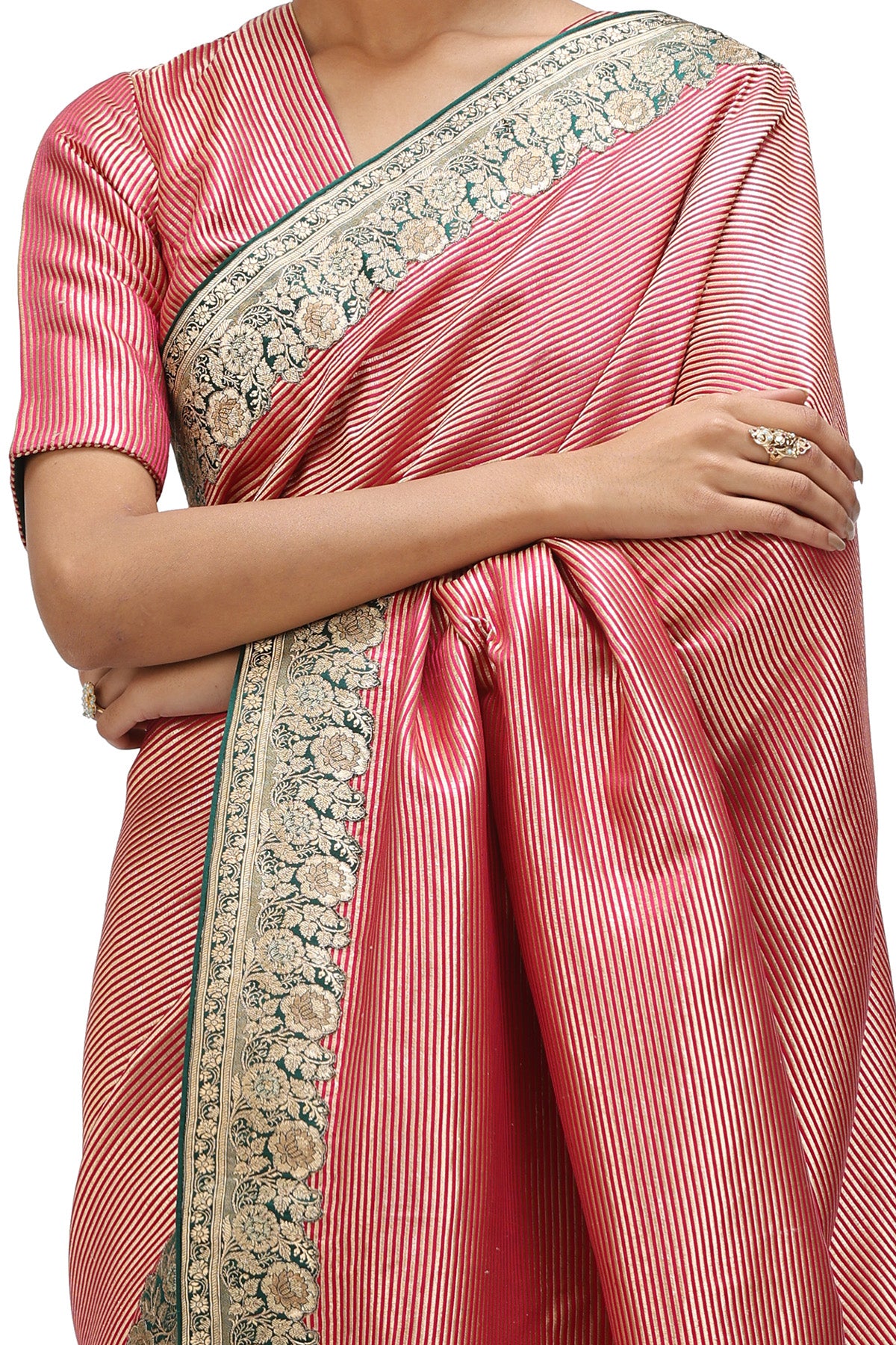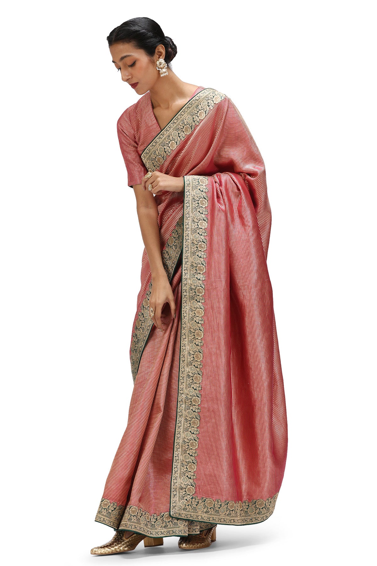 Veera is an intricately hand-woven satin silk saree. The textile base is satin silk with a 'danda' weave pattern. It comes with an unstitched blouse piece.