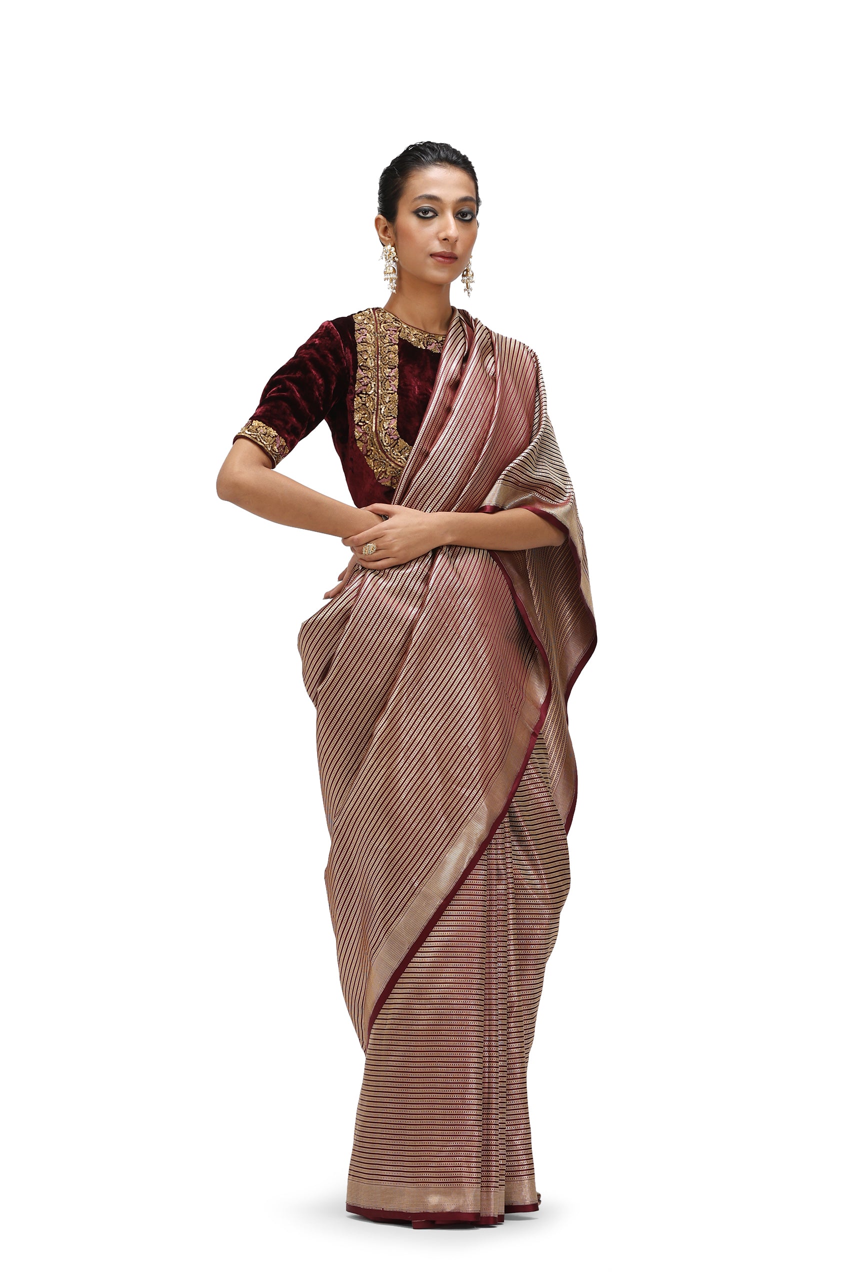Ramnik is an intricately hand woven satin silk saree. The textile base is satin silk with 'danda' weave pattern. It comes with an unstitched blouse piece.