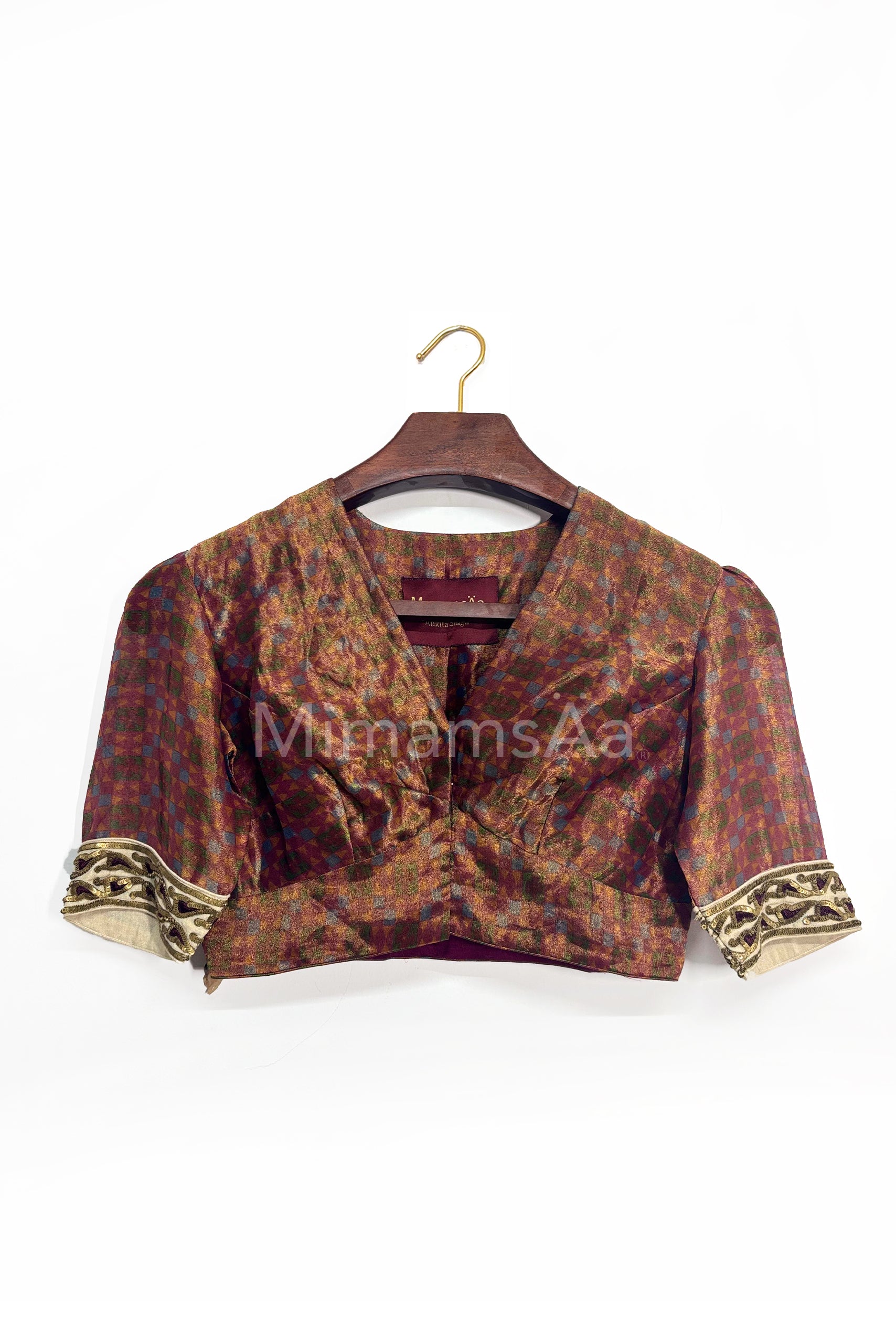 Intricately woven tissue silk blouse.