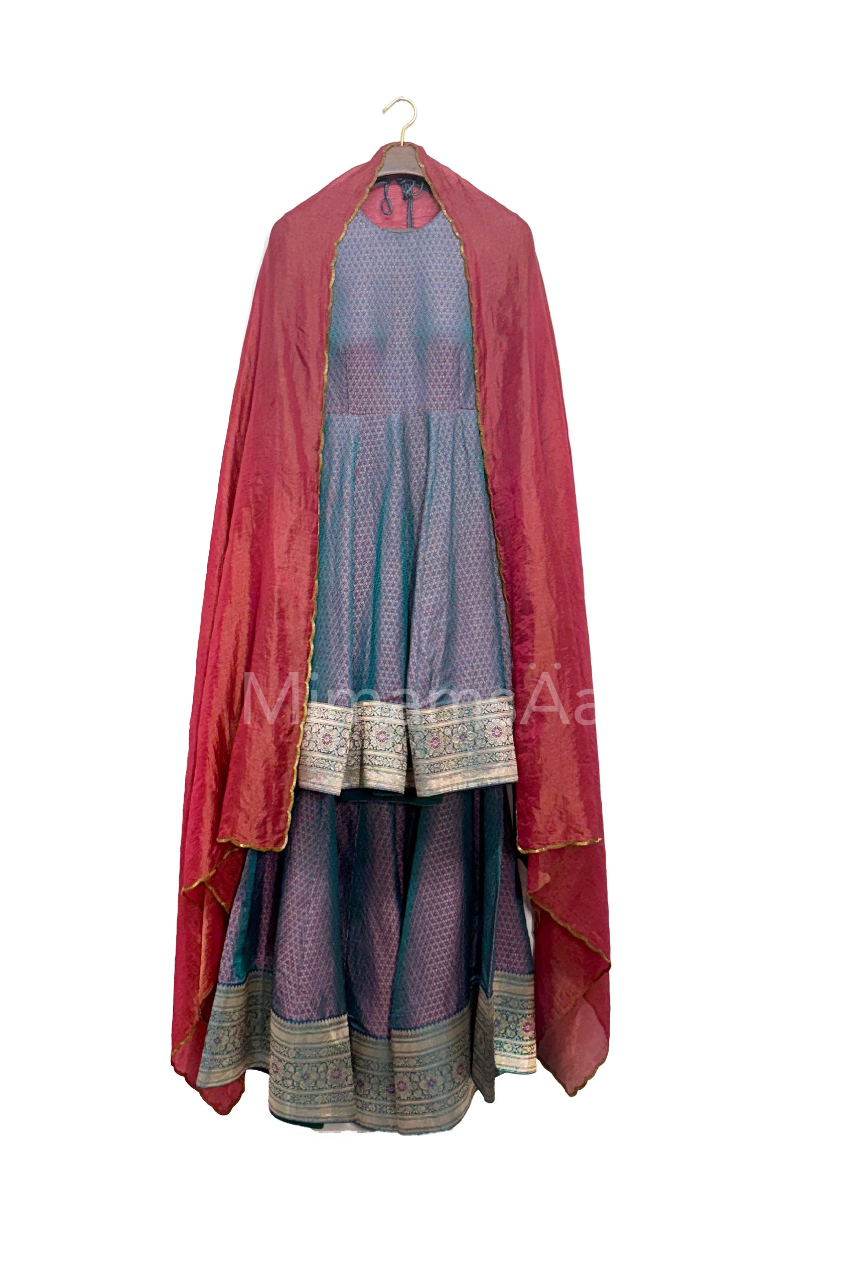 Intricately handwoven brocade kurta set.