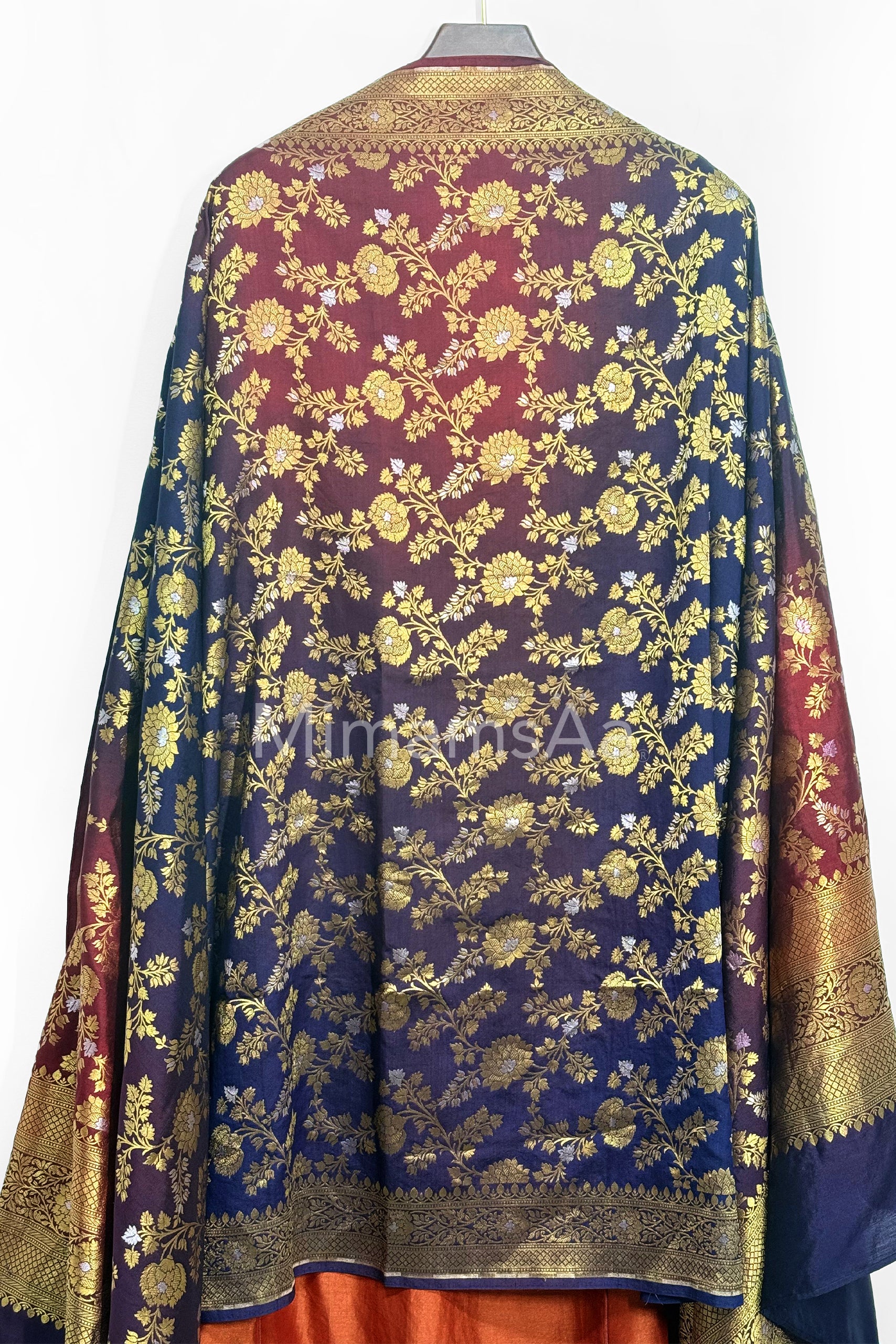 Intricately handwoven chanderi silk kurta set paired with Banarasi dupatta.